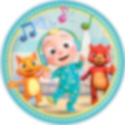 8 Teller mit einem süßen Motiv der Charaktere aus Cocomelon. Perfekt, wenn es Zeit ist den Tisch für eine Feier zu decken. Die Teller bestehen aus umweltfreundlichem Papier und haben einen Durchmesser von etwa 23 cm.