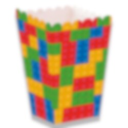 Füllen Sie diese bunte Popcornbox im Baustein-Design mit Popcorn oder anderen Leckereien für eine kreative Party!