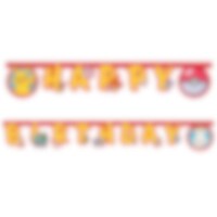 Farbenfrohe Papiergirlande mit dem Text "Happy Birthday" und Motiven von Pokémon, die perfekte Dekoration für eine Pokémon-Party. Die Girlande ist 2 Meter lang.