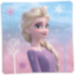 20 Servietten mit einem ausgefallenen Motiv von Elsa auf der einen und Anna auf der anderen Seite aus Frozen - Die Eiskönigin. Ein schönes Detail für die Tischdekoration Ihrer Frozen - Die Eiskönigin-Party.