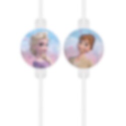 4 Papierstrohhalme mit wunderschönen Motiven aus Die Eiskönigin. Diese zauberhaften Strohhalme bringen winterlichen Glanz auf jede Frozen-Party – perfekt, um Getränke zu servieren und die Tischdekoration zu verschönern.