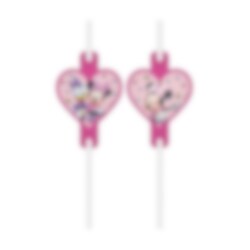 4 Papierstrohhalme mit süßen Motiven von Minnie Maus und ihrer Freundin Daisy Duck. Diese liebevoll gestalteten Strohhalme bringen Farbe und Spaß auf jede Minnie-Maus-Party – perfekt, um Getränke zu servieren und die Tischdekoration zu verschönern.