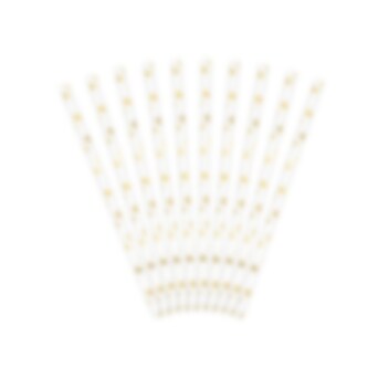 10 stilvolle Papierstrohhalme in Weiß mit goldenen Herzmotiven. Diese wunderschönen Strohhalme sind eine traumhafte Tischdekoration für Kindergeburtstage, Babypartys oder andere festliche Anlässe.