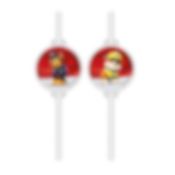 4 Papierstrohhalme mit Motiven von Chase auf der einen und Rubble auf der anderen Seite aus der beliebten Fernsehserie Paw Patrol. Ein lustiges Partyaccessoire für die Paw-Patrol-Kindergeburtstagsparty.