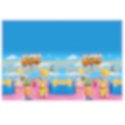 Tischdecke aus Kunststoff mit farbenfrohen Motiven von Stumble Guys. Die Tischdecke ist 120 x 180 cm groß.