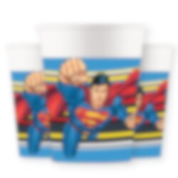 8 Pappbecher mit Motiv des Superhelden Superman. Perfekt, wenn Sie eine lustige Tischdekoration für eine Party mit Superhelden-Thema gestalten möchten.