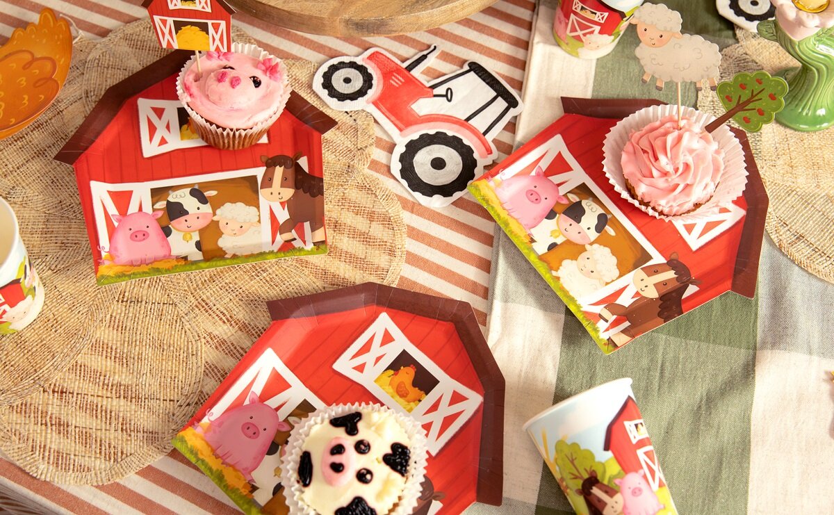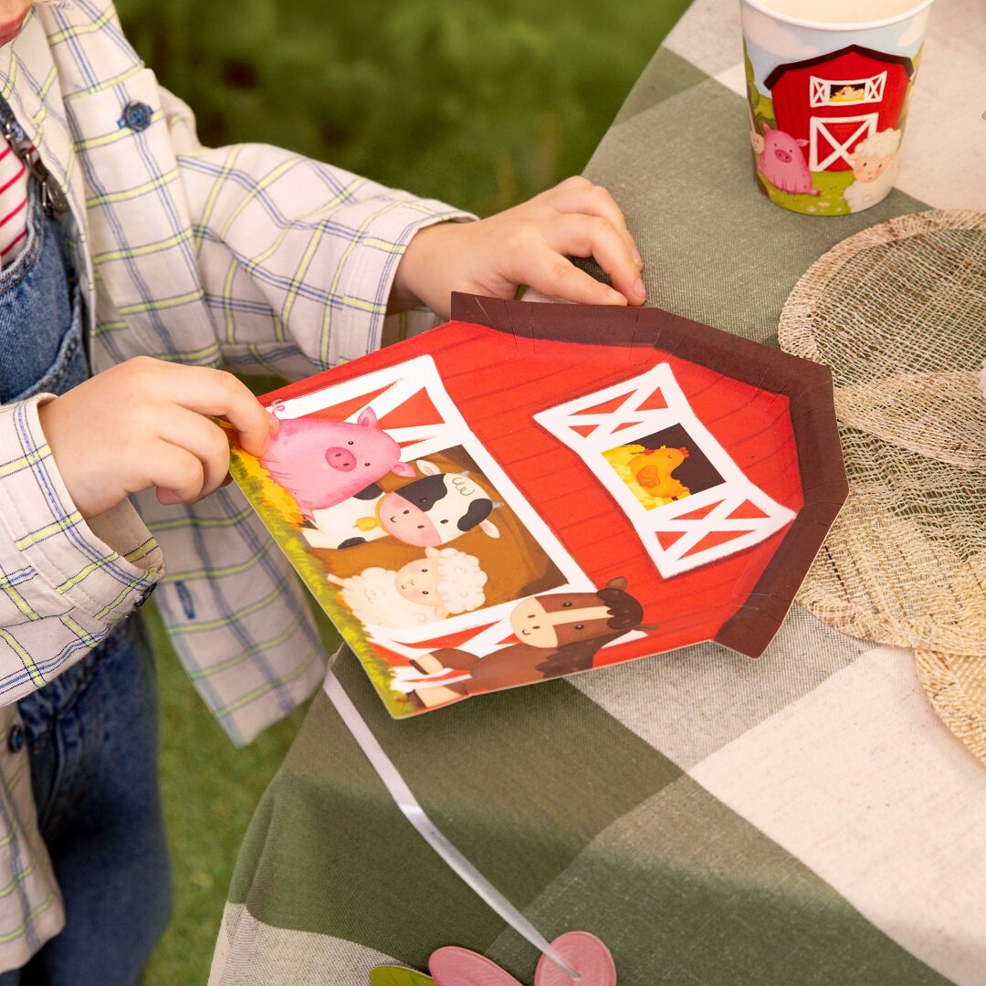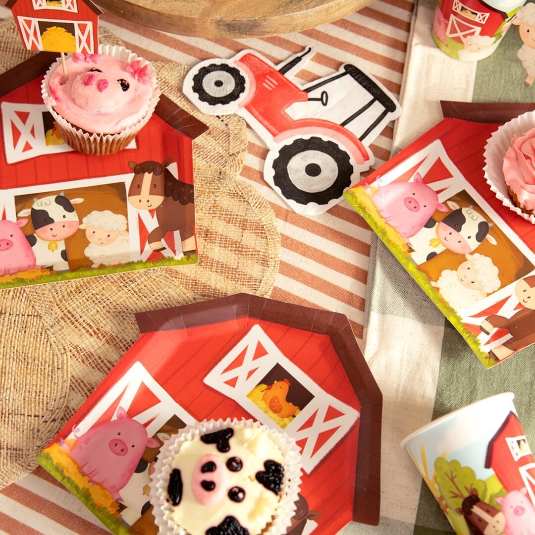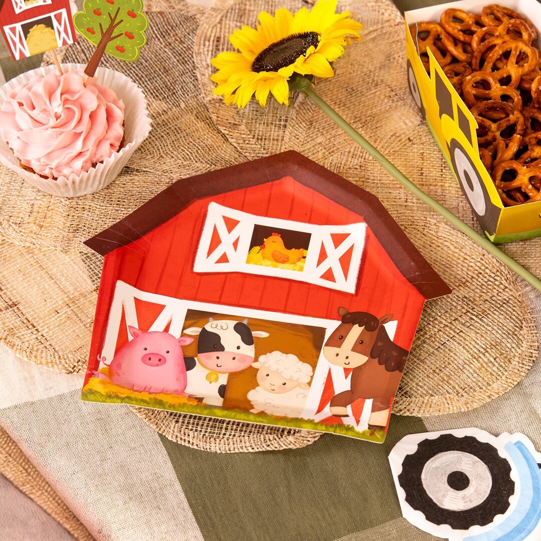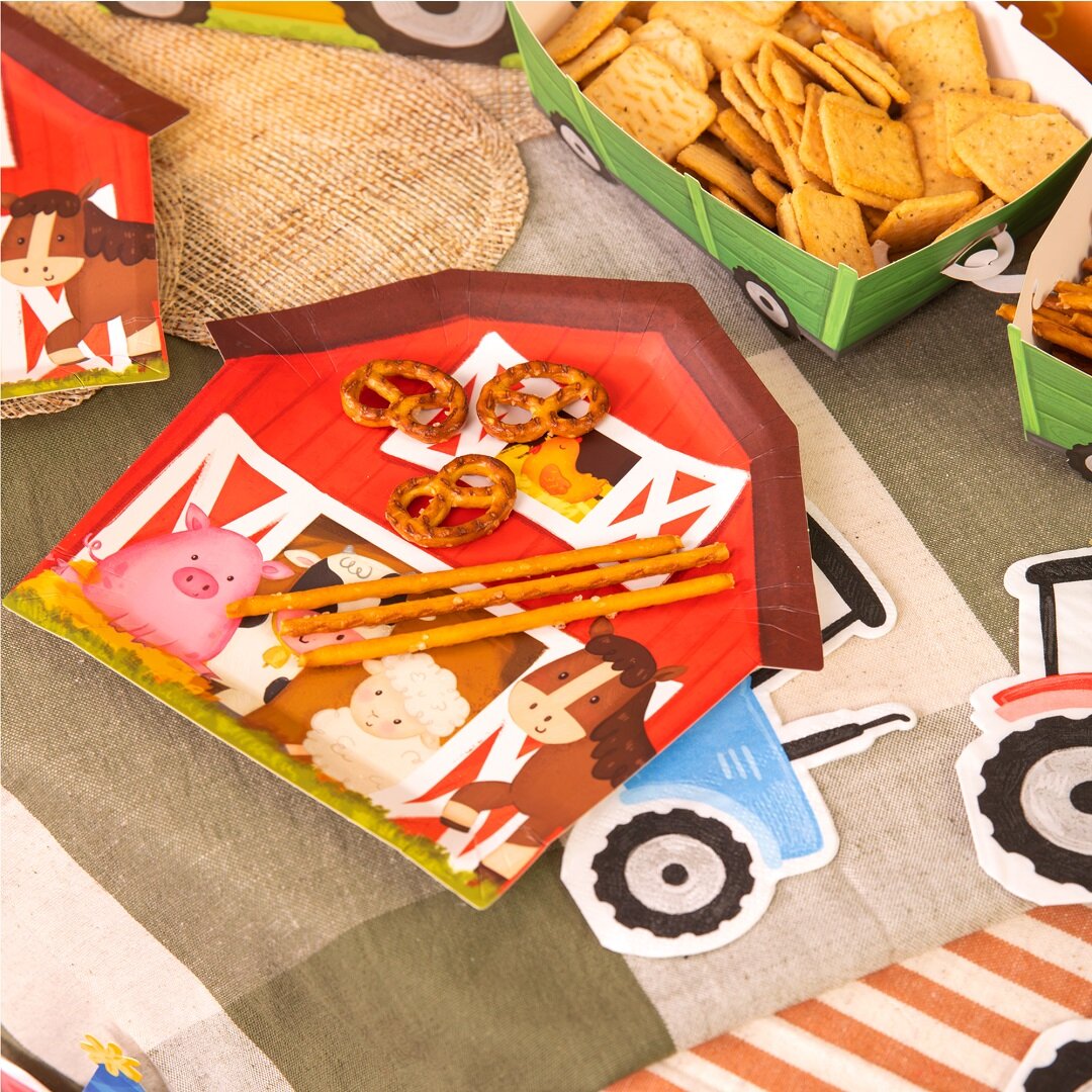 Sie passen perfekt zu Geburtstagsfeiern mit Bauernhof-Thema und eignen sich hervorragend, um Kuchen, Snacks und andere Leckereien darauf zu servieren. Die Teller sind 20 x 20 cm groß.
