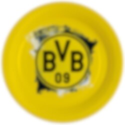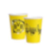 8 Pappteller mit Motiven des Fußballteams BVB Dortmunds Logo. Die Teller haben einen Durchmesser von 23 cm und sind aus FSC-zertifizierter Pappe hergestellt, was sie zu einer umweltfreundlichen Wahl macht.