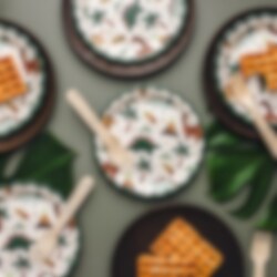 Die Kuchenteller sind aus Papier und haben einen Durchmesser von 18 cm.