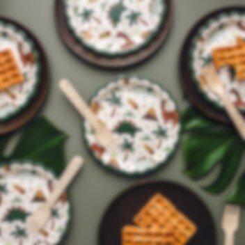 6 Kuchenteller in herrlichen Farben mit verschiedenen Motiven von Dinosauriern. Für diejenigen, die sich für Dinosaurier interessieren, sind diese Kuchenteller eine offensichtliche Wahl für eine lustige Themenparty.