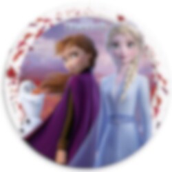 8 Pappteller mit weißem Rand und bunten Blättern und mit einem wirklich schönen Motiv von Elsa, Anna und Olaf aus dem Film Frozen 2. Perfekt, um sie zum Dekorieren bei der Party mit dem Thema 'Die Eiskönigin 2 mitzubringen. Die Teller haben einen Durchmesser von etwa 23 cm.