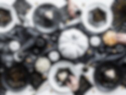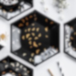Diese schwarzen Pappteller sind sechseckig und mit glänzenden goldenen Fledermäusen verziert, was ihnen einen eleganten und festlichen Look verleiht. Eine perfekte Ergänzung für jede Halloween-Party.