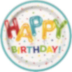 8 Pappteller mit Motiven von Luftballons in verschiedenen Farben mit dem Text "Happy Birthday". Perfekt für Partys jeder Art. Kombinieren Sie es mit anderen Accessoires aus unserem wunderschönen Ballon-Thema.
