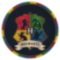 8 Pappteller mit Harry Potter Motiven. Die Teller haben einen Durchmesser von 23 cm und sind aus FSC-zertifiziertem Papier hergestellt.