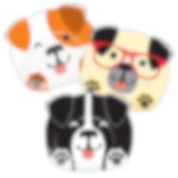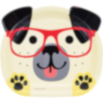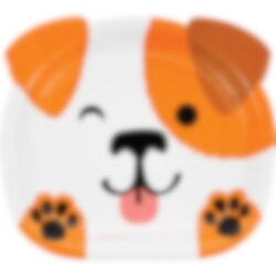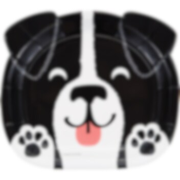 8 Pappteller in Form von Hundeköpfen, gestaltet in drei verschiedenen Designs. Perfekt zum Eindecken für einen fantastischen Kindergeburtstag mit Hundethema. Die Teller sind etwa 22 x 20 cm groß.