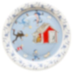8 Pappteller mit schönen illustrierten Motiven aus Astrid Lindgrens Michel aus Lönneberga. Diese Teller sind 23 cm im Durchmesser.