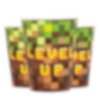 8 quadratische Pappteller mit coolem Pixelmotiv und dem Text Level Up. Die Teller bestehen aus FSC-zertifiziertem Papier und sind 23 x 23 cm groß.