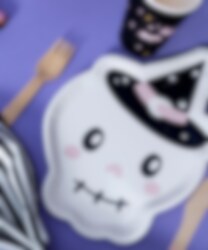 6 lustig geformte Teller im Halloween-Thema. Die Teller sind 18 x 27 cm groß.