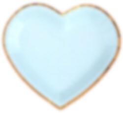 10 herzförmige Teller in Hellblau mit goldfarbenen Folienrändern. Super schöne Teller zum Dekorieren für eine Party, Babyparty oder Taufe. Die Teller sind etwa 22,5 x 20 cm groß.