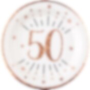 Roségold glitzernde Teller 50. Geburtstag 10er-Pack