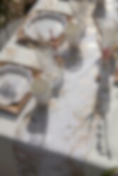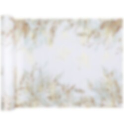 Wunderschöner Tischläufer mit raffinierten Motiven aus neutralem Blattwerk und Reliefdetails mit Goldfolie. Decken Sie den Tisch schön mit diesem für eine feinere Veranstaltung oder Party.