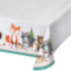 Große Tischdecke aus Kunststoff in schönen Farben mit den Tieren und dem Wald aus dem Thema "Woodland Animals“. Eine perfekte Ergänzung für die Tier-Mottoparty. Die Tischdecke ist 137 x 259 cm groß.