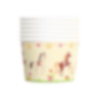 Diese bezaubernden Eisbecher mit Pferdemotiv bringen Landhausflair auf jedes Kinderfest. Mit fröhlichen Pferden, Herzen, Blumen und Hufeisen sind sie ideal für kleine Pferdefans. Die Becher bestehen aus Pappe, sind 5,4 cm hoch und fassen 150 ml – perfekt für Eis oder andere Leckereien.