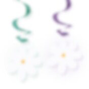 Zum Sortiment gehören Hängedeko in verschiedenen Ausführungen, darunter Girlanden, Wabenbälle und dekorative Elemente aus Papier oder Folie. Ergänzend stehen Folienvorhänge, Wanddekorationen und aufblasbare Dekorationen zur Verfügung, die größere Flächen oder Eingangsbereiche betonen.