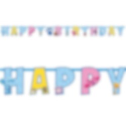 Blues Clues Pappgirlande mit dem Text Happy Birthday. Die Girlande ist 170 cm lang und jeder Buchstabe ist etwa 15 cm hoch.
