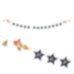 Süße Girlande im Flugzeugthema mit sowohl Flugzeugen als auch Sternen aus Papier, mit denen man eine Party dekorieren kann. Jeder Stern hat einen Buchstaben, der zusammen "Happy Birthday" ergibt. Zur Girlande gehört eine Schnur, die 3 Meter lang ist.