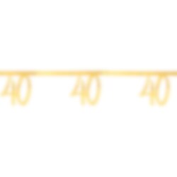 Dekorative Pappgirlande in glänzender Goldfolie und der Zahl 40. Die Girlande ist eine hervorragende Dekoration für Ihre 40. Geburtstagsfeier und jede Zahl ist 18 x 23 cm groß und die Girlande selbst ist 250 cm lang.