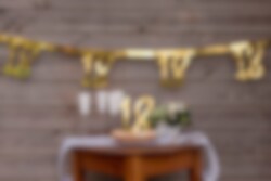 Dekorative Pappgirlande in glänzender Goldfolie und der Zahl 80. Die Girlande ist eine hervorragende Dekoration für Ihre 80. Geburtstagsfeier und jede Zahl ist 18 x 23 cm groß und die Girlande selbst ist 250 cm lang.