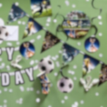Dekorieren Sie Ihre Fußballparty mit dieser dekorativen Wimpelkette aus Pappe mit coolen Fußballmotiven. Mit einer Länge von ganzen 4 Metern und 15 Wimpeln kreiert diese Girlande eine festliche Stimmung.