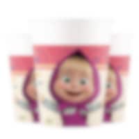 Girlande aus Papier mit dem Text "Happy Birthday" und Motiven von Mascha und der Bär. Dekoriert mit süßen Details, inspiriert von der lustigen Welt von Mascha und der Bär.