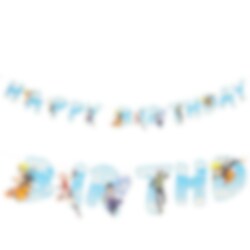 Eine schöne Girlande aus Papier mit dem Text "Happy Birthday" und schönen Motiven aus Naruto. Die Girlande ist 2 Meter lang und die Buchstaben sind etwa 16 cm hoch.