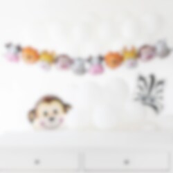 Ballonggirlande mit verschiedenen schönen Safaritieren – perfekt für eine Safari-Mottoparty! Die Girlande ist 206 cm lang, und jeder Ballon hat eine Höhe von 34 cm. Die Ballons verfügen über ein selbstschließendes Ventil und lassen sich leicht mit einer Ballonpumpe oder dem beiliegenden Strohhalm aufblasen.