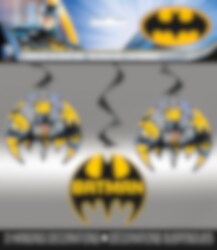 3 Hängedeko zum Thema Batman. Hängen Sie diese aus dem Batman-Mottoparty auf.