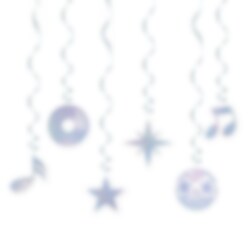 Diese glänzenden Hängedekorationen bringen Bewegung und Glanz in Ihre Party – ganz im Stil der Discotanzfläche. Mit Motiven wie Sternen, Noten, Schallplatten und Discokugeln aus schimmernder Folie setzen sie funkelnde Akzente im Raum.