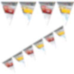 Coole Wimpelkette mit actionreichen Motiven aus Disney Cars. Eine perfekte Dekoration für die Geburtstagsfeier mit Cars-Thema. Die Girlande besteht aus Wimpeln mit zwei verschiedenen Motiven und lässt sich leicht aufhängen, um eine festliche Atmosphäre zu schaffen. Aus Kunststoff gefertigt und ca. 2,3 Meter lang. Offiziell lizenziertes Produkt.