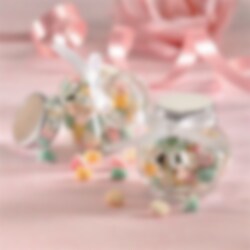 12 kleine süße Gläser, in die Sie Süßigkeiten und andere lustige Dinge füllen können, wenn es Zeit für eine Feier oder Kinderparty ist. Die Gläser sind etwa 5 cm hoch und sollten nur von Hand gespült werden.
