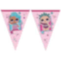 Beeindruckende Wimpelkette aus Kunststoff in wundervollen Farben mit Motiven von Cosmic Queen und Splash Queen von der LOL Surprise-Gruppe The Glitterati. Eine lustige Dekoration, mit sie den Raum verschönern können, wenn es Zeit für eine Kinderparty ist. Die Girlande ist etwa 2,3 Meter lang und hat auf beiden Seiten Motive.