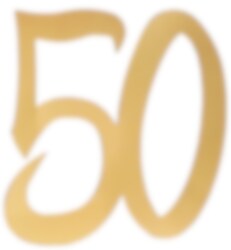 4 Dekorationen aus goldfolieniertem Pappe. Diese Dekorationen haben viele Anwendungsbereiche und können mit anderen Dingen im 50. Geburtstags-Thema kombiniert werden. Die Dekorationen sind 18 x 20 cm groß.