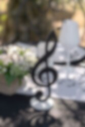 Tischdekoration aus Holz in Form von einem G-Schlüssel zur Tischdekoration. Diese Tischdekoration ist perfekt, wenn Sie eine Mottoparty veranstalten möchten, bei der die Musik im Mittelpunkt steht. Die Dekoration ist 10 x 27 cm groß.