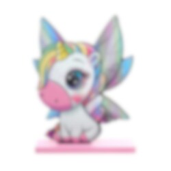 Schöne Tischdekoration aus Holz mit einem süßen und bunten Einhorn. Eine wunderbare Dekoration und ein Detail, das perfekt auf den gedeckten Tisch passt. Die Figur sitzt auf einer Holzplatte, die für Stabilität sorgt und nach der Kinderparty kann sie als Einrichtungsdetail im Kinderzimmer verwendet werden.