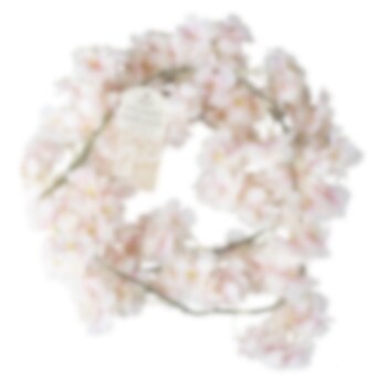Diese Dekorationsgirlande ist in Form eines Zweiges, der mit kleinen rosa Kirschblüten aus Kunstmaterial geschmückt ist. Die Girlande ist etwa 1,8 Meter lang. Verwenden Sie es für Ihre Tischdekoration zu einem festlichen Anlass.