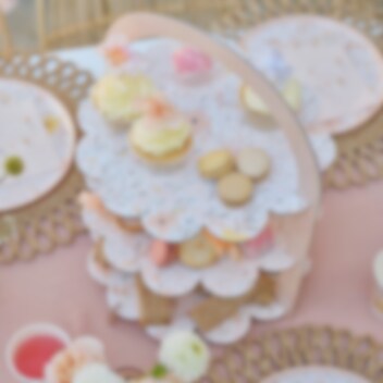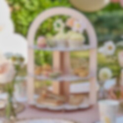 Heben Sie das Beste auf Ihrem Festtisch mit unserem pastellfarbenen Rosa Blumen Kuchenständer hervor. Dieser elegante 3-Ebener Ständer ist der perfekte Mittelpunkt, um Leckereien bei stilvollen Feierlichkeiten zu servieren.