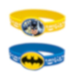 4 stilvolle Armbänder in schönen Farben und mit Motiven aus dem Batman-Thema. Coole Armbänder, um den Partygästen als Überraschung in den Geschenktüten zu geben oder als lustiges Geschenk für das Geburtstagskind. Die Armbänder sind aus Gummi und sind etwa 12 mm breit.