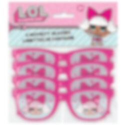 4 coole Brillen mit LOL Surprise Motiven. Eine lustige Überraschung für die Geschenktüten auf der Kinderparty.