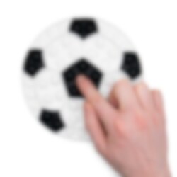 Cooles Fidget-Spielzeug in Form eines Fußballs in den klassischen Farben Schwarz und Weiß. Ein lustiges Spielzeug, das Sie überall hin mitnehmen können, da es leicht mitzunehmen ist. Das Beste daran ist, dass es nie endet - wenn Sie mit dem Knallen einer Seite fertig sind, drehen Sie es einfach um und beginnen Sie auf der anderen Seite von vorne.