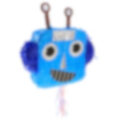 Coole Piñata in Roboterform. Eine Piñata ist eine lustige Überraschung auf jeder Party und kann mit Süßigkeiten und kleinen Spielzeugen gefüllt werden. Die Piñata ist etwa 32,5 x 30 x 7,5 cm groß.